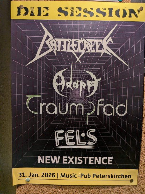 Die Session NR. 25Live im Music-Pub Peterskirchen.FELS - New Existence - Traumpfad - Adapt - Battlecreek Einlass: 18 UhrBeginn: 20 Uhr